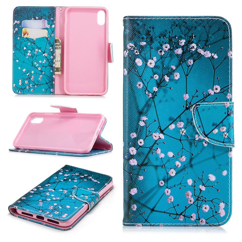 iPhone Xs Max Lichtfleck décor Leder Klapphülle - Flowered Tree