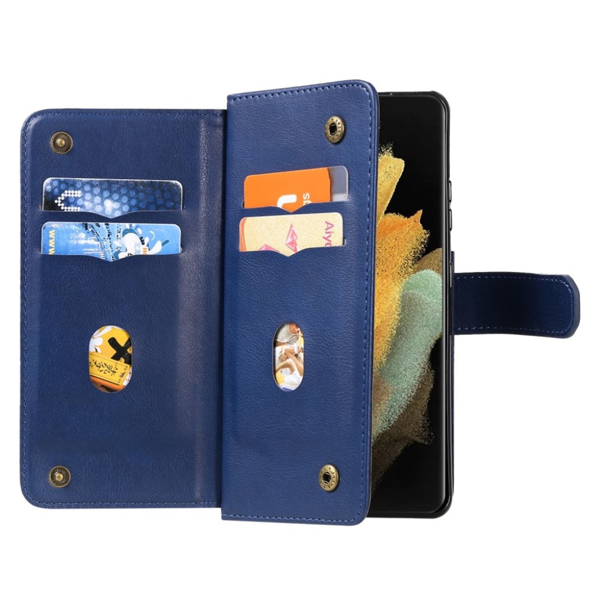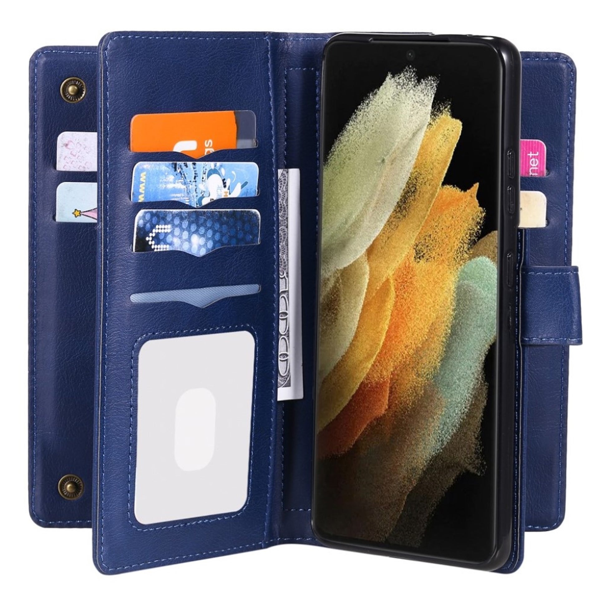 10- Schlitze Geldhülle für Samsung Galaxy S21 Ultra 5G - Blau