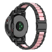 22mm Edelstahlarmband mit Faltschnalle für Garmin Uhr - Schwarz / Pink / Schwarz