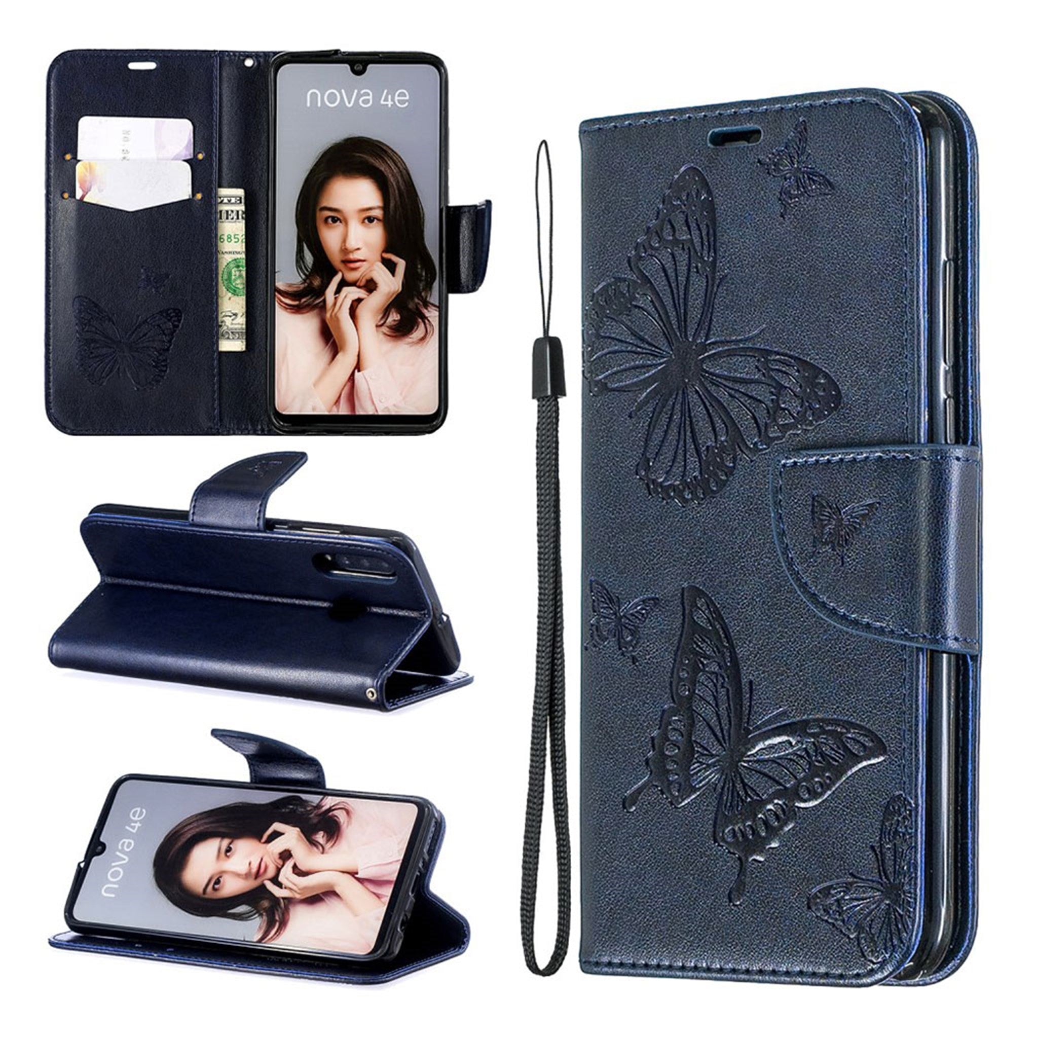 Butterfly Huawei P30 Lite Leder hülle - Dunkelblau