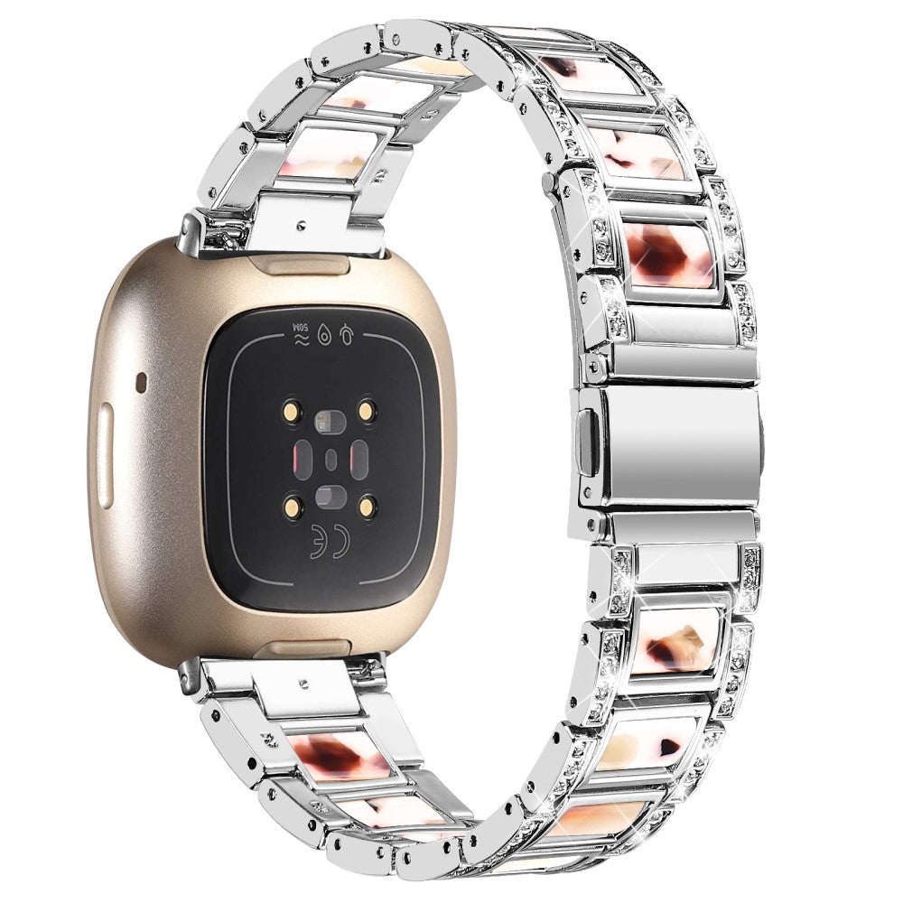 Fitbit Sense / Versa 3 Armband mit Strassdekor aus Harz - Silber / Nougatmuster