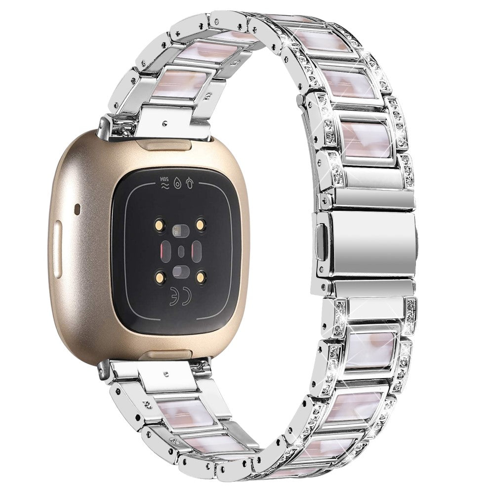 Fitbit Sense / Versa 3 Armband mit Strassdekor aus Harz - Silber / Pink Mix