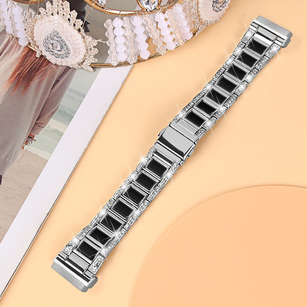 Fitbit Sense / Versa 3 Armband mit Strassdekor aus Harz - Silber / Schwarz