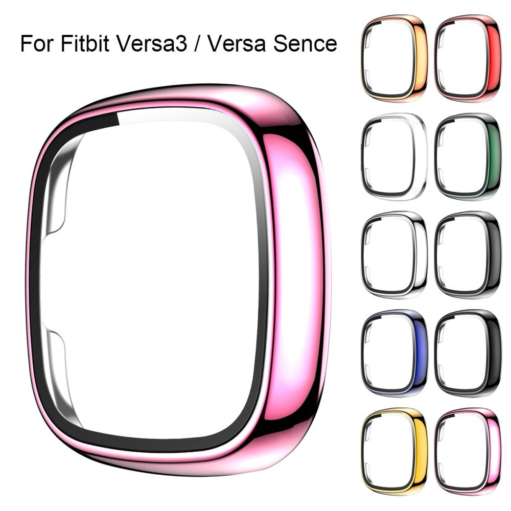 Fitbit Sense / Versa 3 galvanische Abdeckung mit gehärtetem Glas - Pink