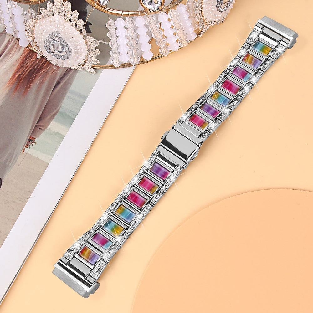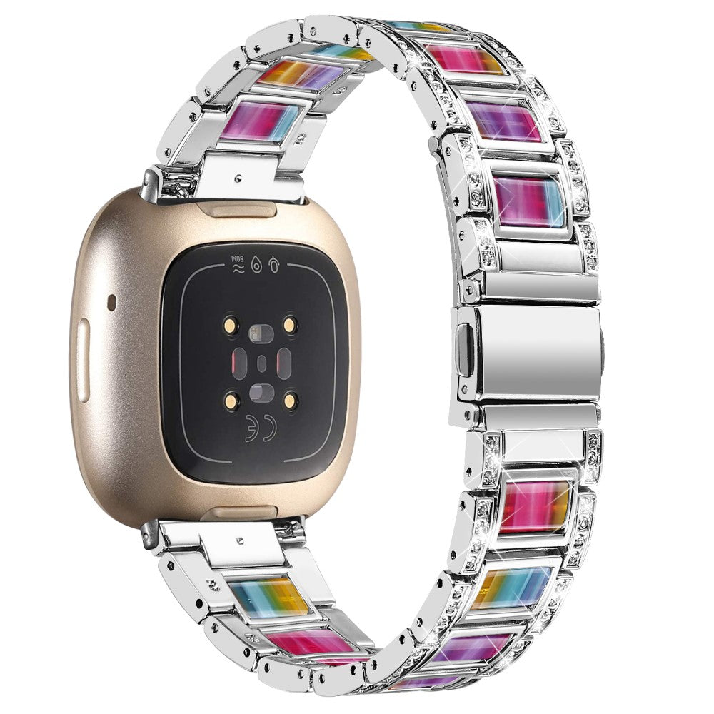 Fitbit Sense / Versa 3 Strass-Dekor Harzblock Uhrenarmband - Silber / Bunt