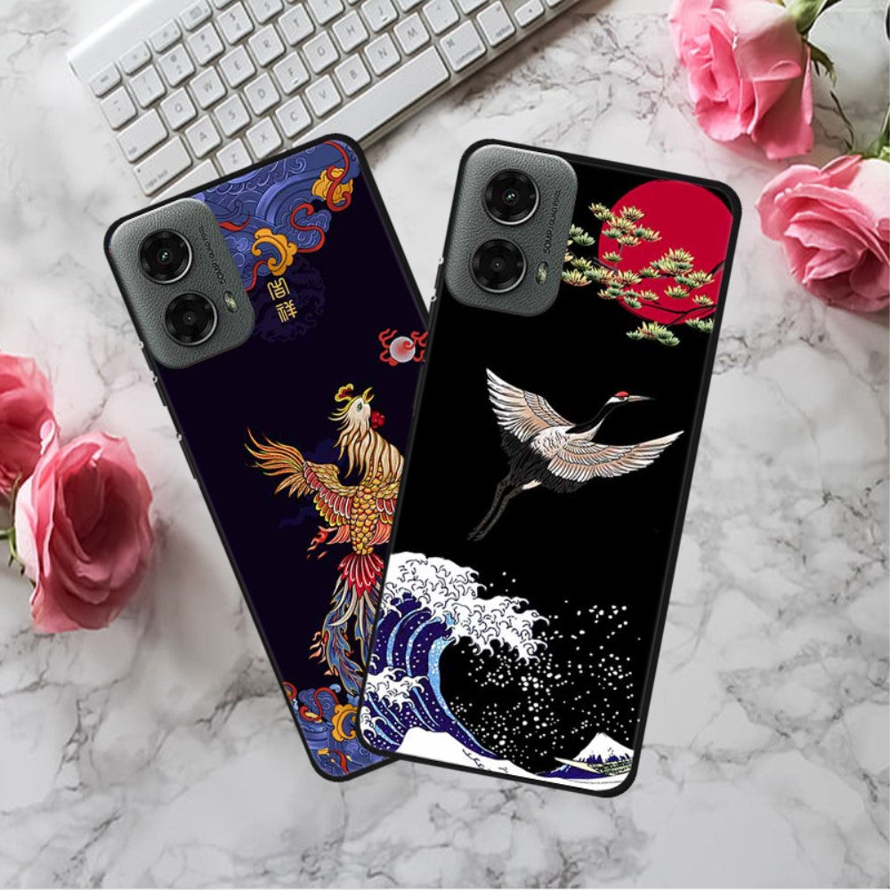 Imagine Motorola Moto G 5G (2024) / Motorola Moto G Play (2024)-handyhülle - Blumiger Azurblauer Drache