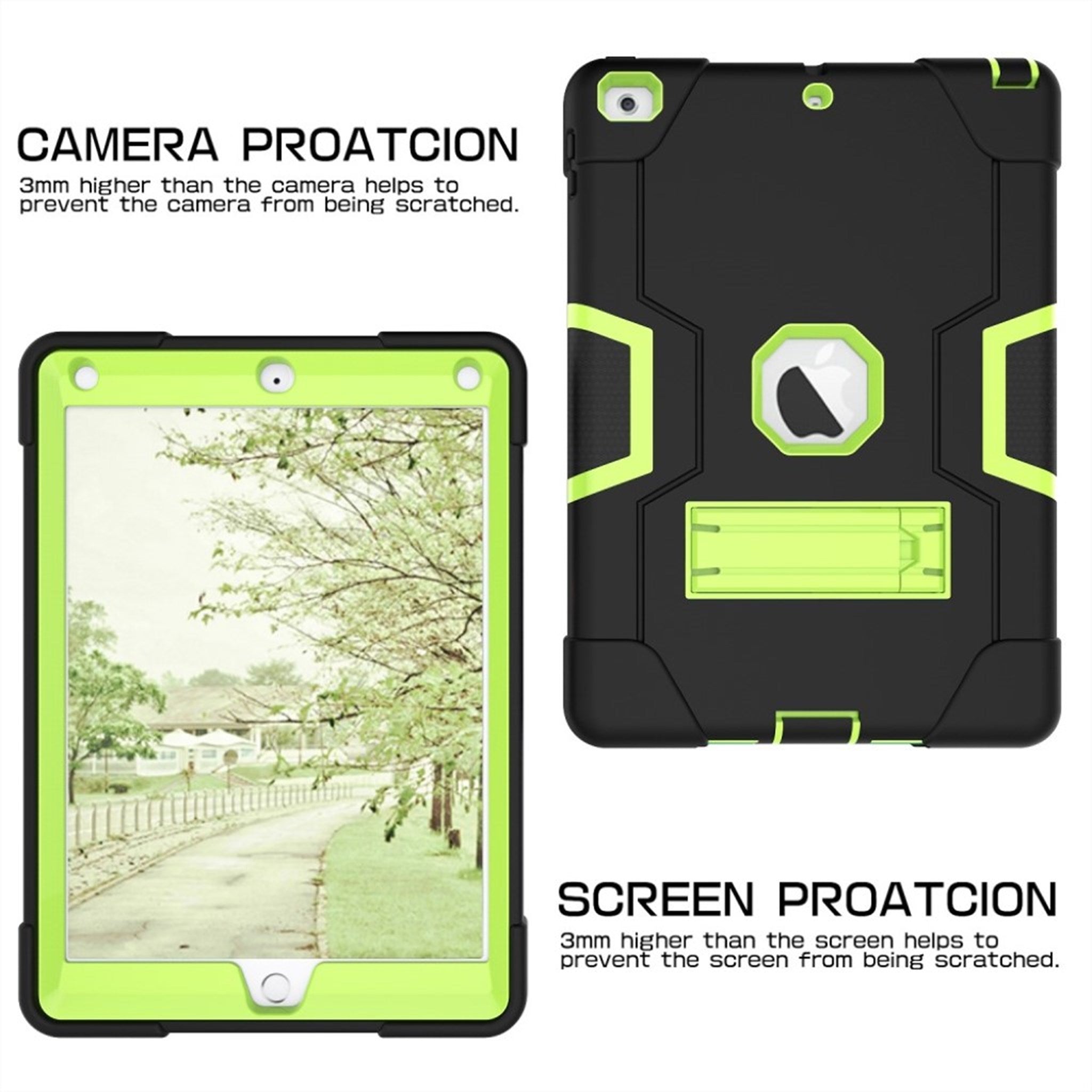 iPad (2018) Ständer Silikon Hülle - Schwarz / Grün