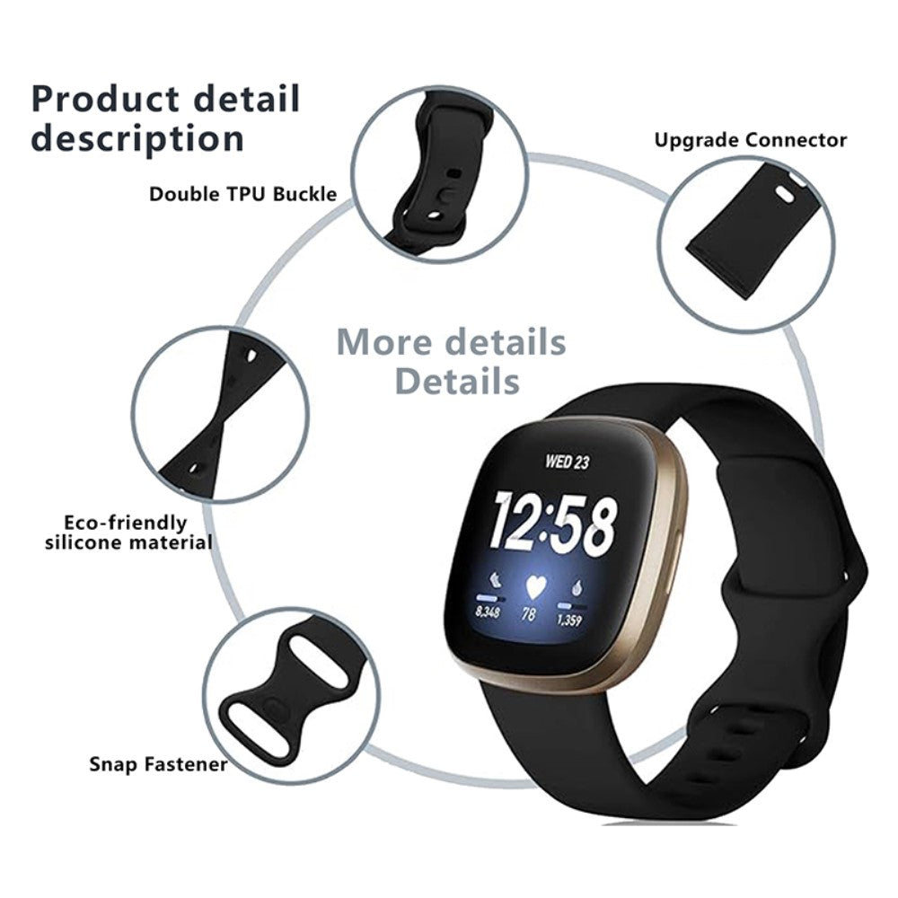 KALEBOL KLB-HDKGJ-001 Fitbit Versa 3 / 4 / Sense / Sense 2 Weiche Silikonarmbänder - Schwarz