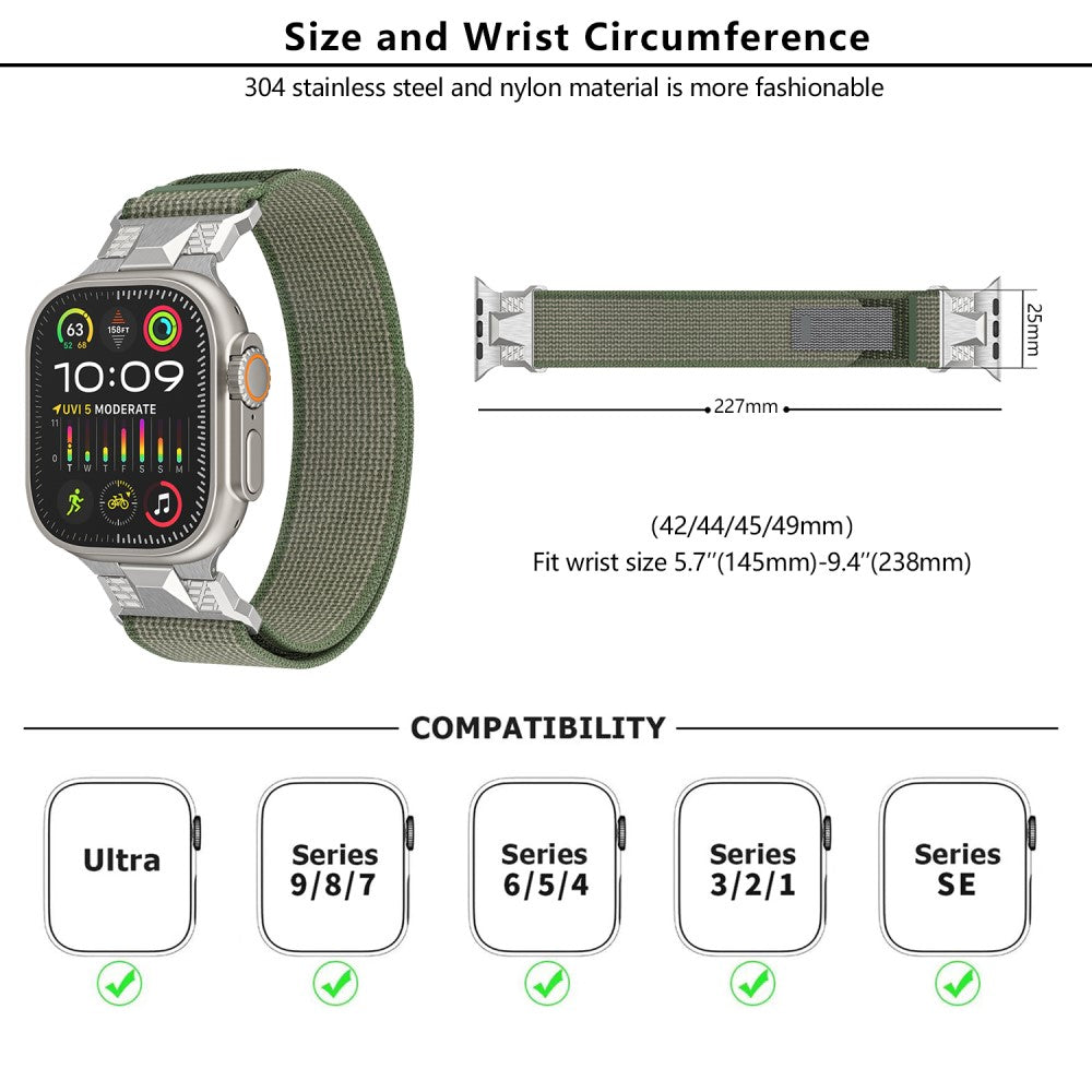 KALEBOL KLB-YJHHNL-001 Apple Watch Series 49mm - 45mm - 44mm - 42mm Nylon-Armband - Schwarz + Grau