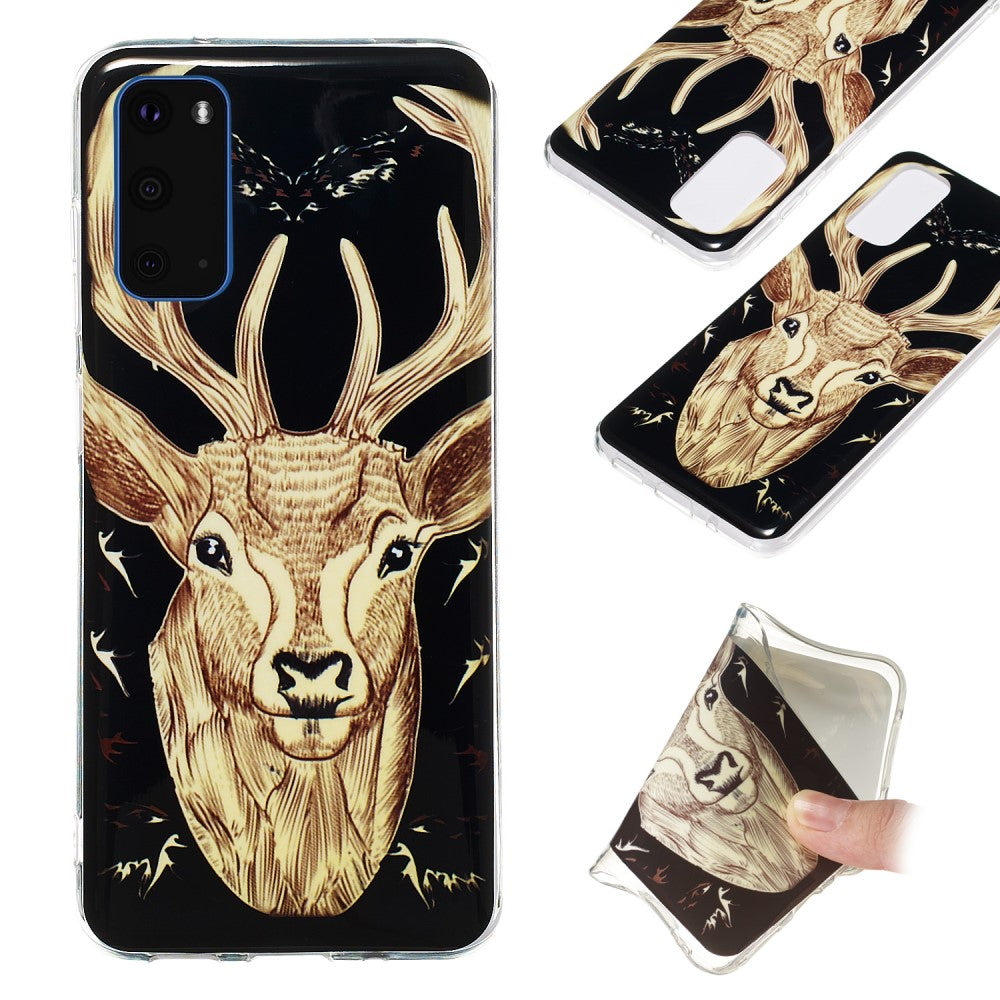 Nachtleuchtende IMD TPU Handyhülle für Samsung Galaxy S20 4G/S20 5G - Elch-Muster