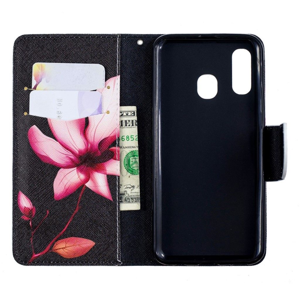 Samsung Galaxy A40 Gemusterte Lederhülle - Blumenmuster