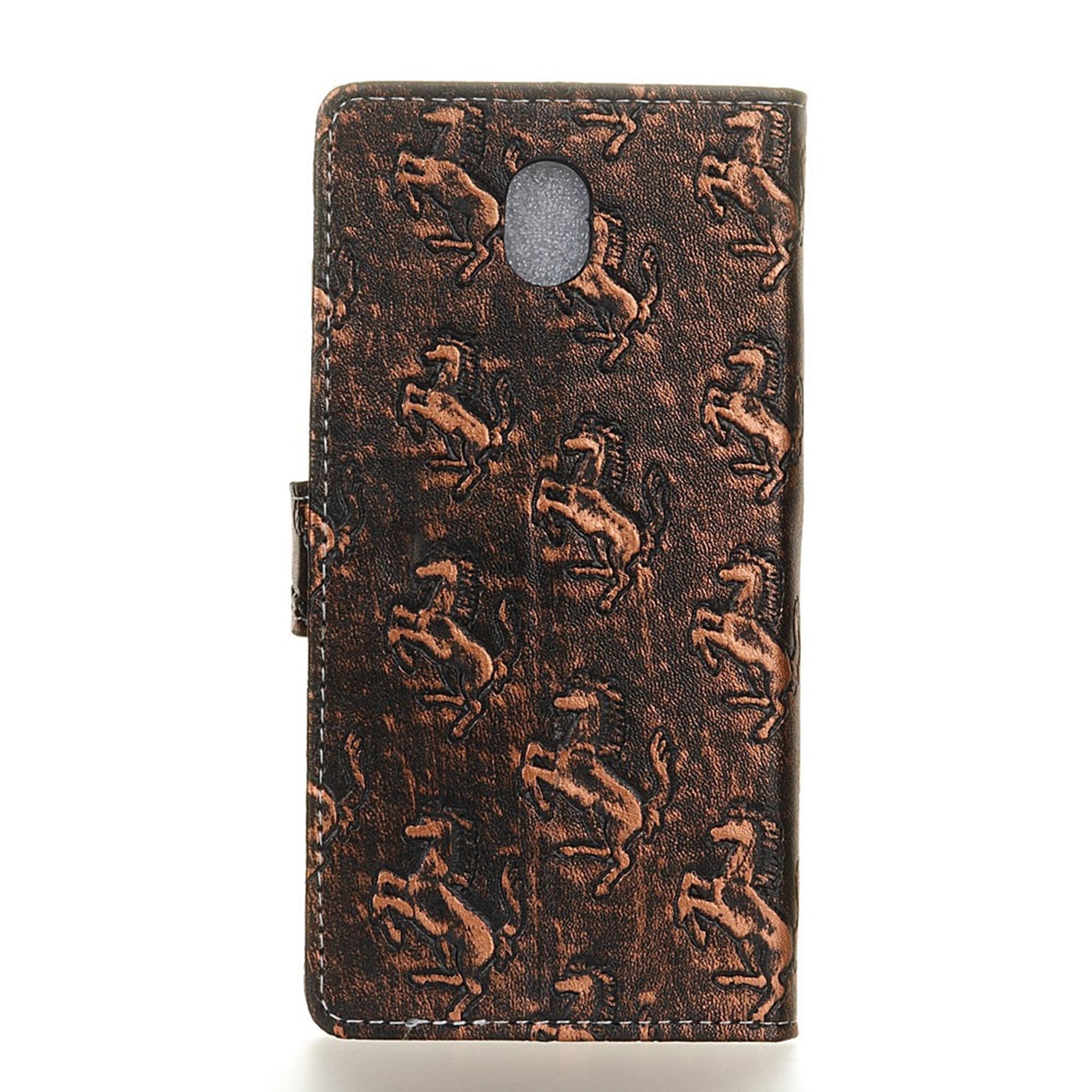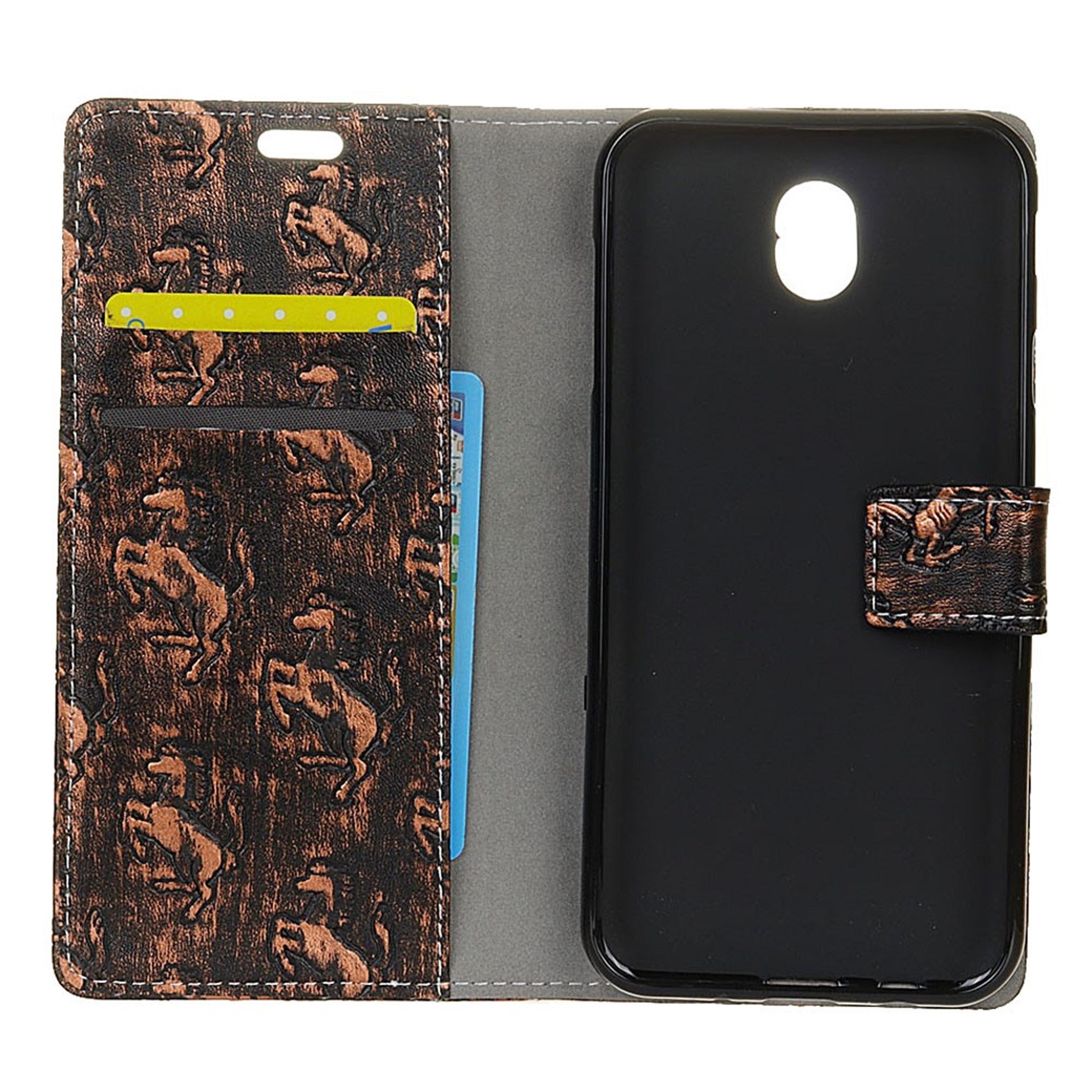 Samsung Galaxy J7 (2017) Metall stil aufdruck PU Leder Klapphülle - Braun - Horses