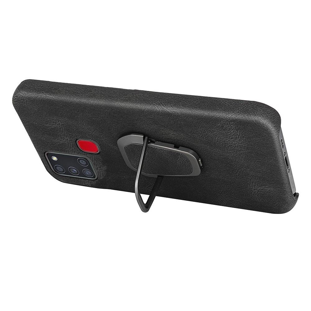 Stoßfeste Lederhülle mit ovalem Kickstand für Samsung Galaxy A21s - Rot