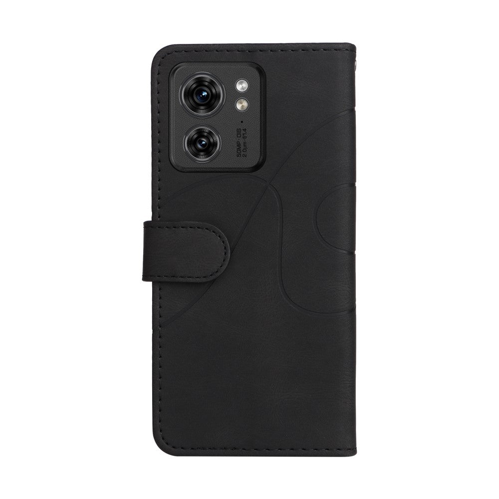 Strukturierte Ledertasche mit Gurt für Motorola Edge 40 - Schwarz