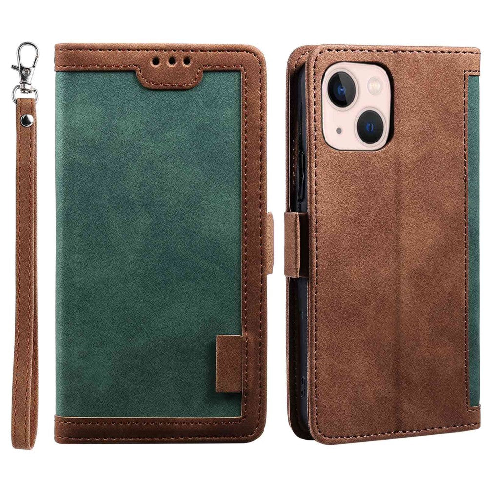 Surbian iPhone 15 Plus Leder Flip hülle - Grün