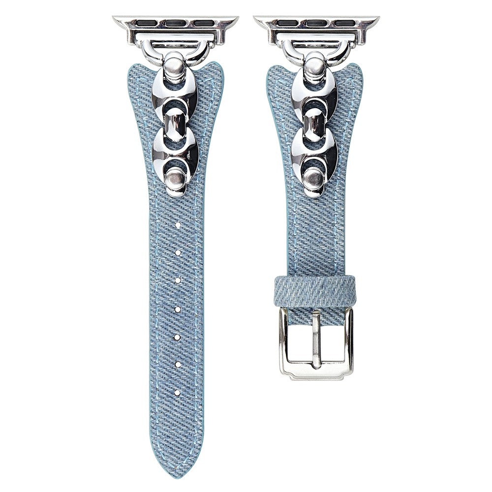 Uhrenarmband Apple Watch Series 10 42mm Metall D-Buckle Denim Lederarmband - Baby Blau / Silber
