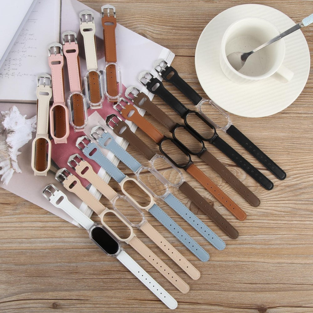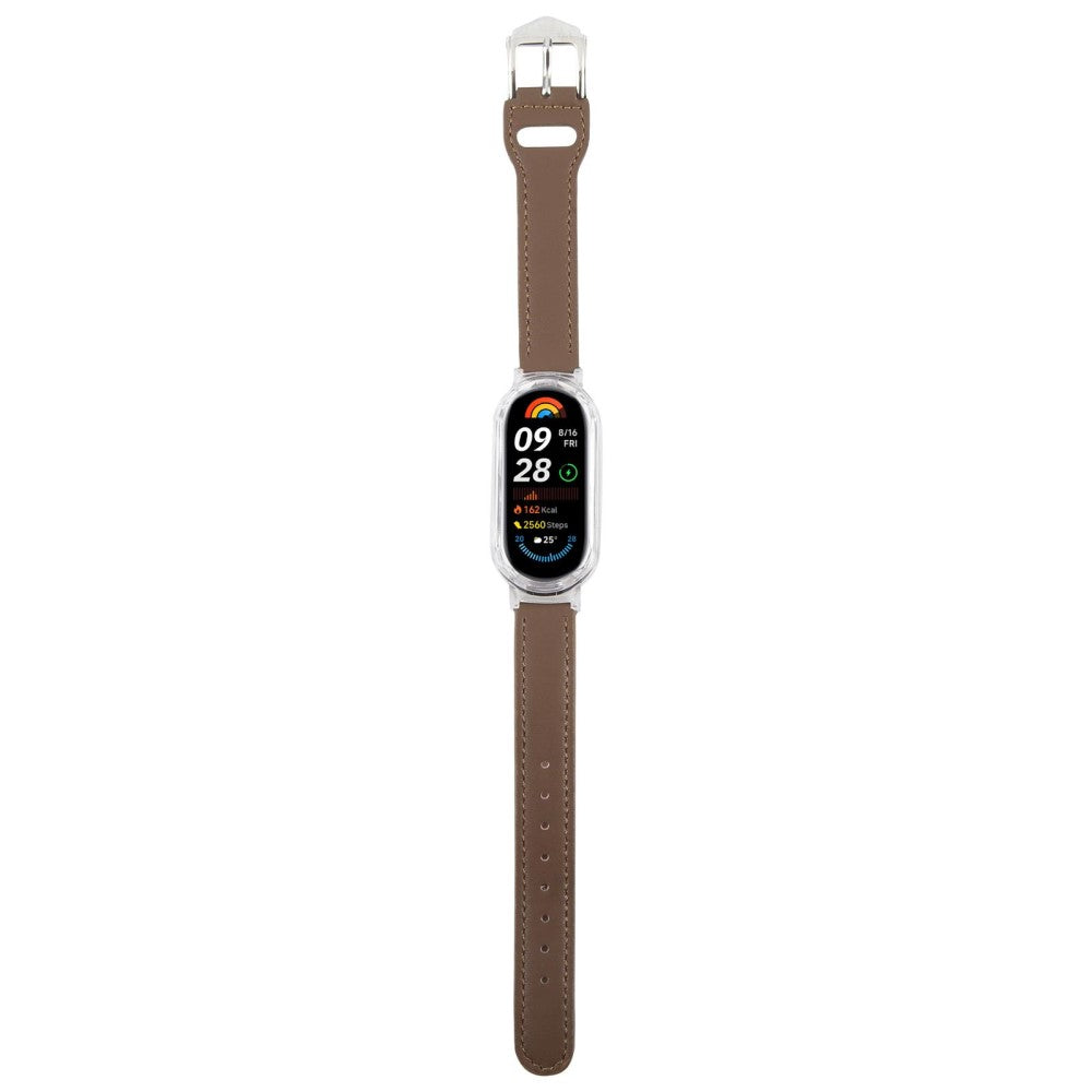 Xiaomi Smart Band 8 Stoßfestes Uhrengehäuse Integriertes Ultrafaser-Leder-Schnellverschluss-Uhrenarmband - Transparent / Kaffee