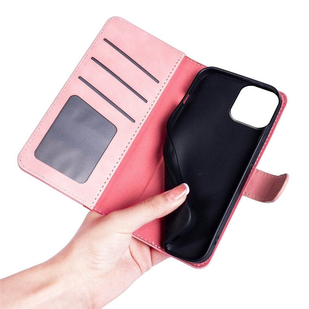 Zweifarbige Leder-Klapphülle für iPhone 12 / iPhone 12 Pro - Rosa