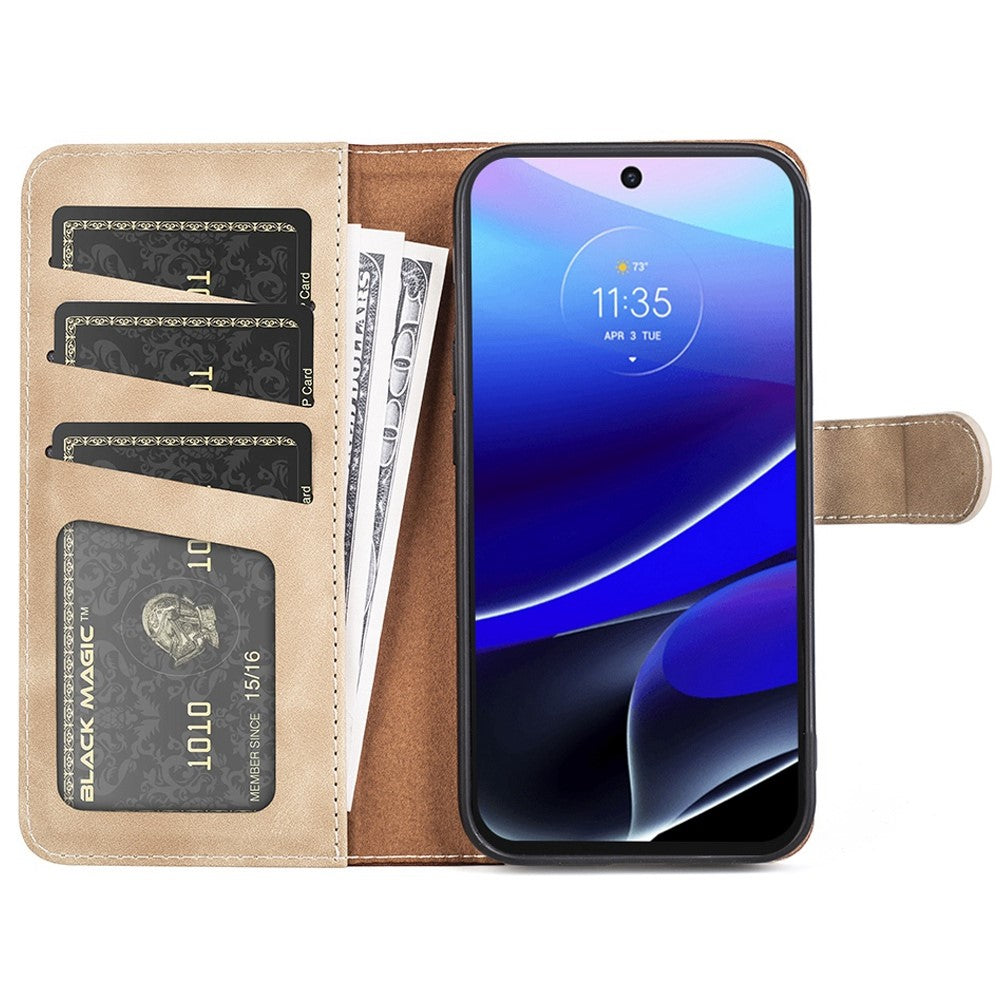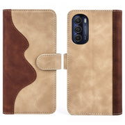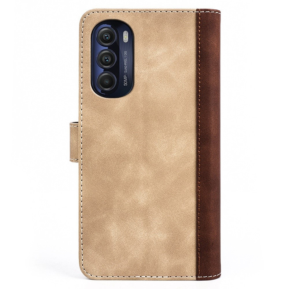 Zweifarbige Leder-Klapphülle für Motorola Moto G (2022) - Gelb