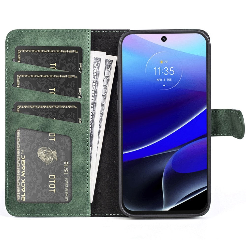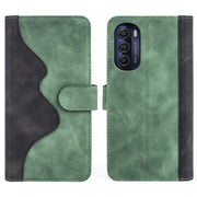 Zweifarbige Leder-Klapphülle für Motorola Moto G (2022) - Grün