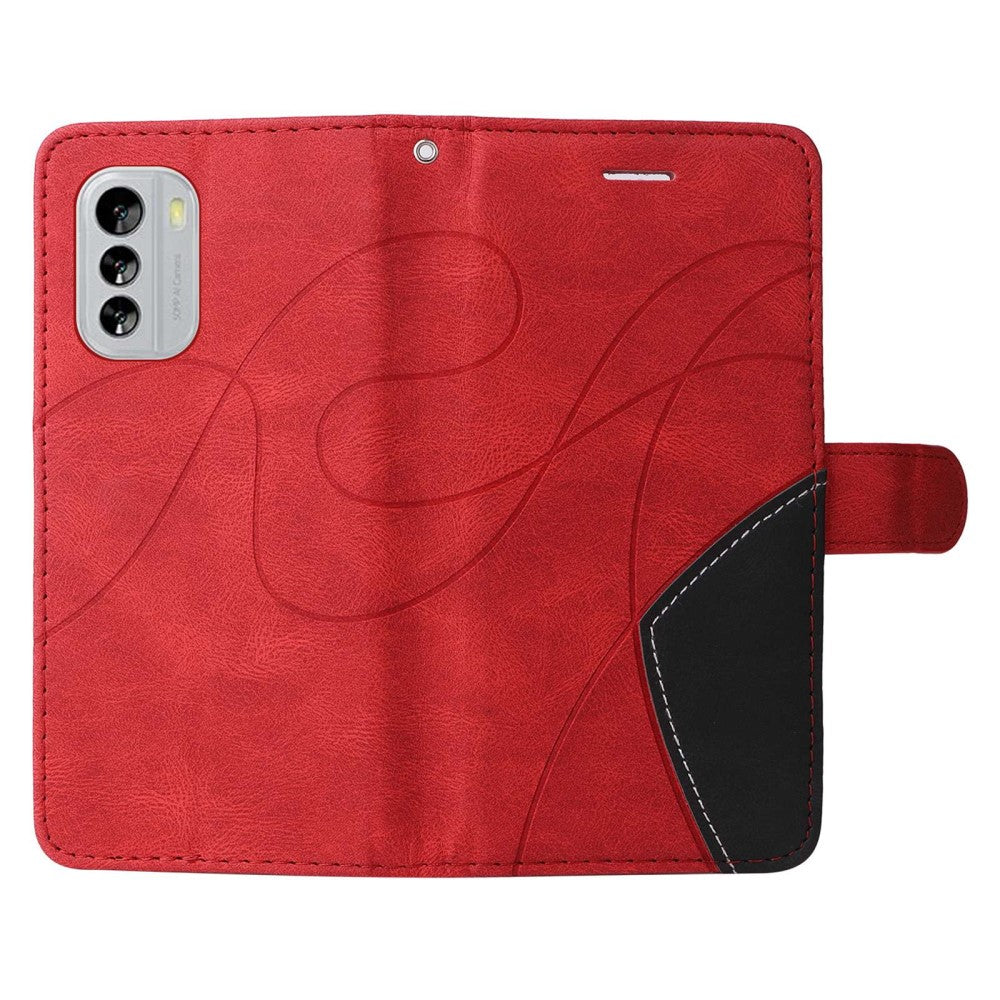 Zweifarbige Leder-Klapphülle für Nokia G60 - Rot